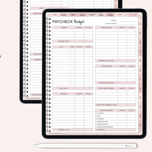 A sleek, handcrafted planner designed to track your expenses and savings with precision. Comes with refillable pages, monthly dividers, and a pen loop for convenience.